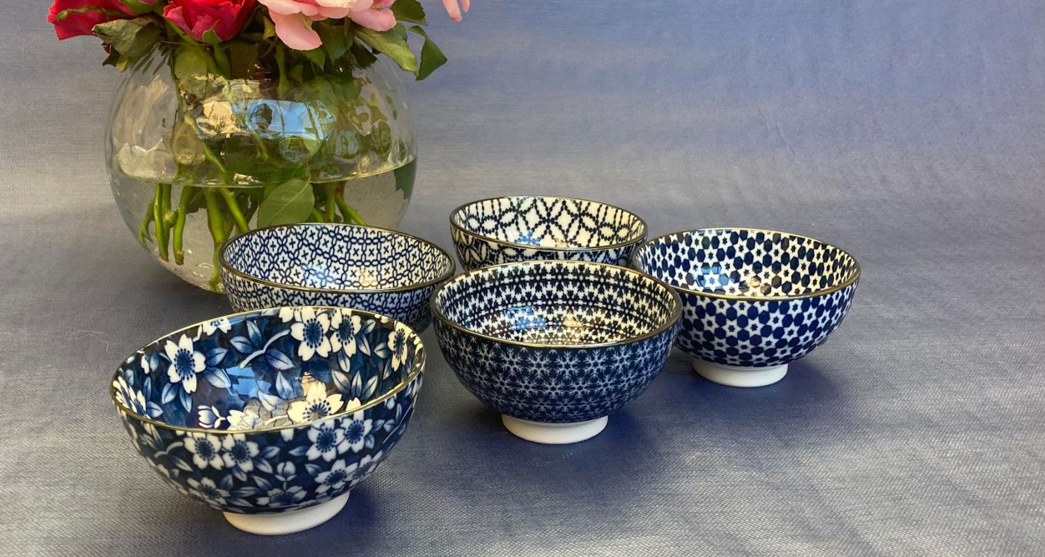 Blue Shade är en jättesöt, japansk risskål som finns i fem olika blå nyanser och mönster så att alla i familjen får sin favoritskål. Köper du fem olika skålar ur samma serie så skickas risskålarna i en presentkartong.