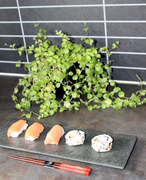 Servera sushi snyggt och smidigt på ett av våra vackra, praktiska sushifat. Vi dukar fram ett stort fat med sushi och därefter plockar var och den bit de vill ha, till en mindre tallrik. Sushibiten doppas i soja och sedan njuter vi. Sushi ska avnjutas långsamt. I vårt sortiment finns både enstaka sushitallrikar som sushiset för två.
