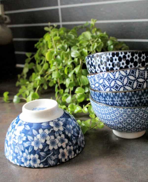 Risskålarna är stapelbara och ofta så hittar du färgglada skålar med vackra och detaljerade mönster. Vid middagsbordet äter varje individ ur sin egen risskål och de små skålarna är i alldeles lagom storlek för att hålla i handen.
