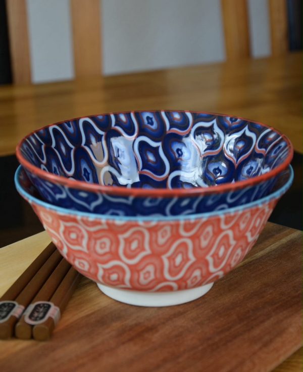 Cloisonne Donburi för 2 är ett elegant skålset för dig som älskar japansk mat. Eller som gillar att äta med alla sinnen. Cloisonne Donburi består av en blå skål, en röd skål och två set ätpinnar. Rymmer cirka 500 ml.