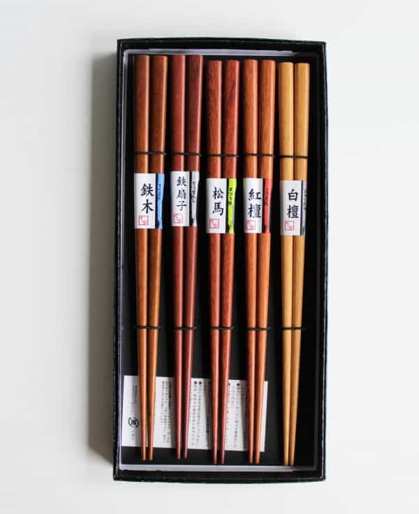 Otroligt vackra japanska ätpinnar att användas till både vardag som fest. De japanska ätpinnarna är 22,5 cm långa och levereras i en vacker presentask. Varje ask innehåller 5 set ätpinnar i olika träkulörer.